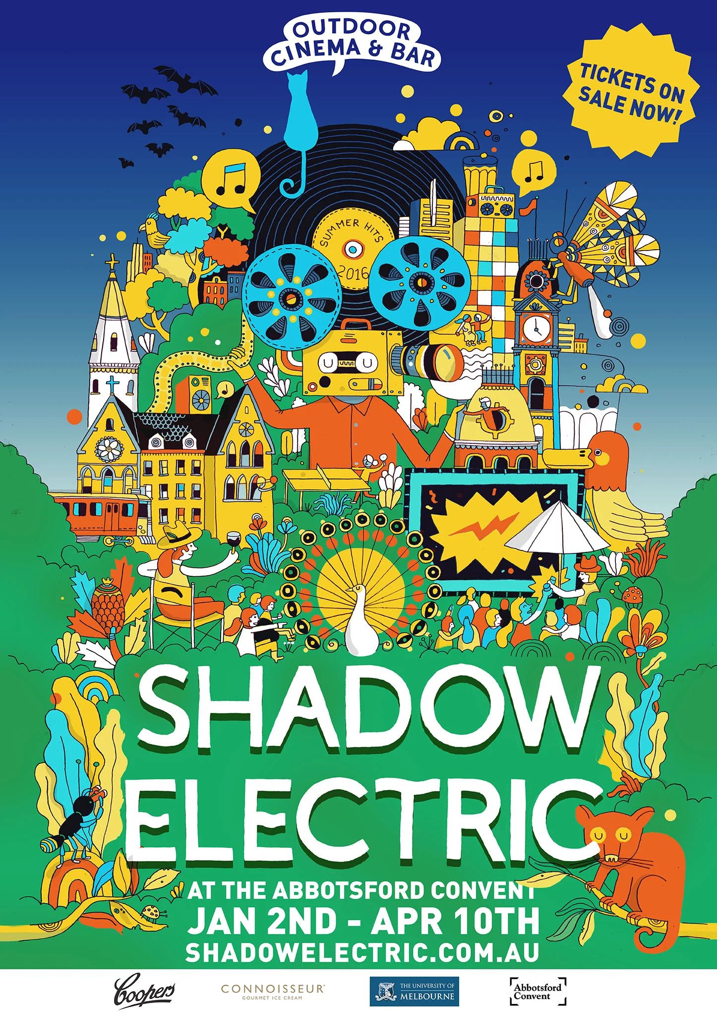For this season, Shadow Electric wanted an intricate and eye-catching poster that helped summarise their cinema experience in one big eyeful. We worked with an insanely talented illustrator to bring their vision to life in a colourful and quirky way. Robbie's Mum really liked this one.